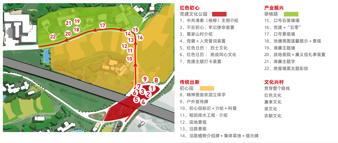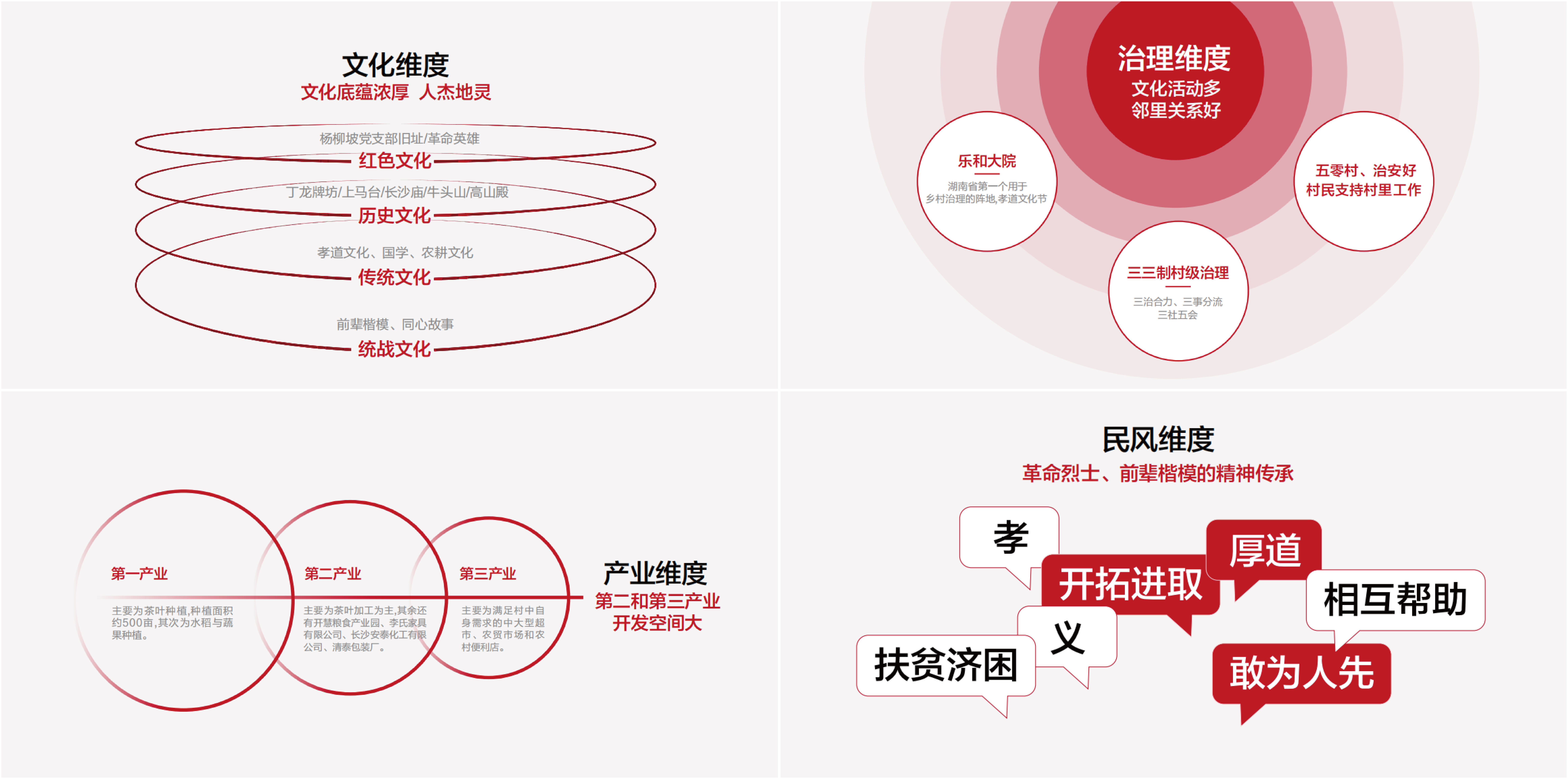 如何在开慧镇浓郁的文化基础上,提炼展示葛家山村的亮点特色?带着这个命题的思考,从“文化维度、产业维度、治理维度、民风维度”的调研了解出发,葛家山村品牌聚焦“以文为核,文化兴村”,以党建文化为引领,主题文化为抓手,经济发展为目标,串起文化圈,联动经济脉。