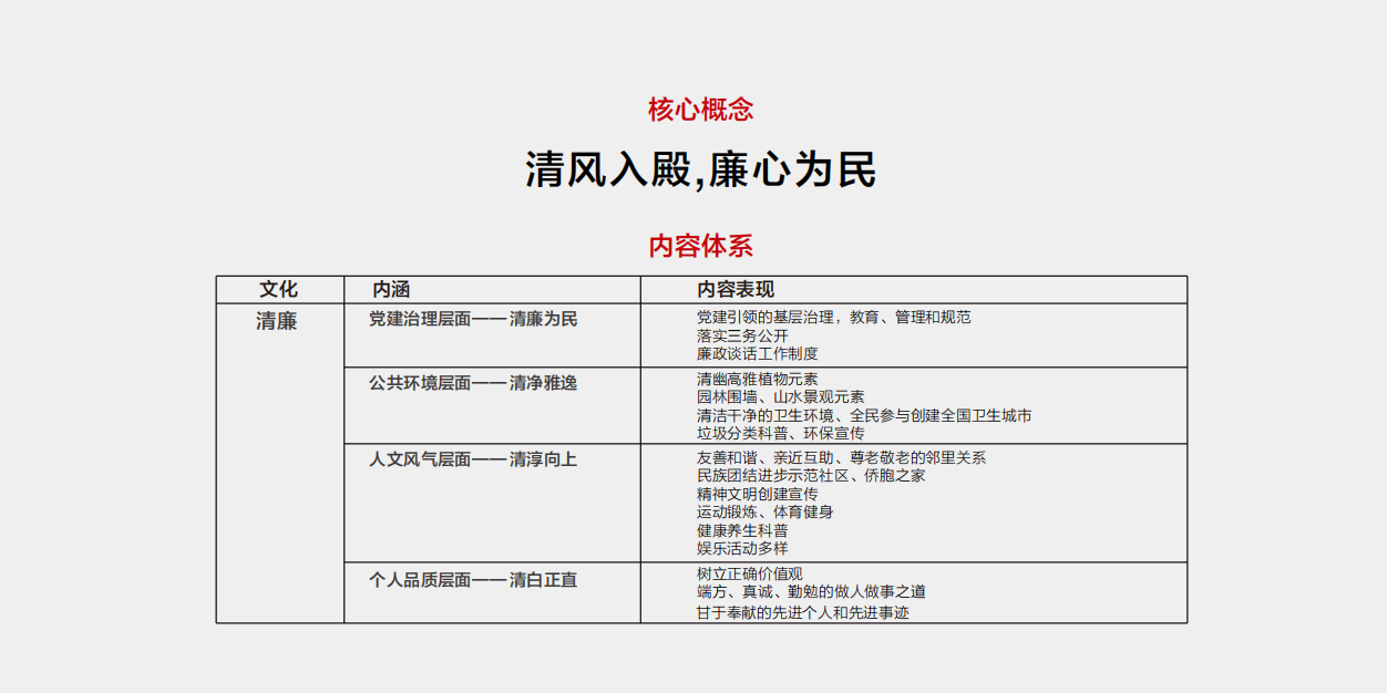 在党的引领下,传承清廉精神, 将个人、家庭、社区连成一线,恪守匠心、勤政务实,共建一个家风正、政风清、民风淳的文明清廉家园,打造服务党员群众的温馨阵地。我们提炼出“清廉文化”作为罗祖殿文化体系的内核,也是塑造人居环境、铸就精神风貌的主导概念, 以“清风入殿,廉心为民”为品牌理念,并以此树立罗祖殿社区的文化品牌。