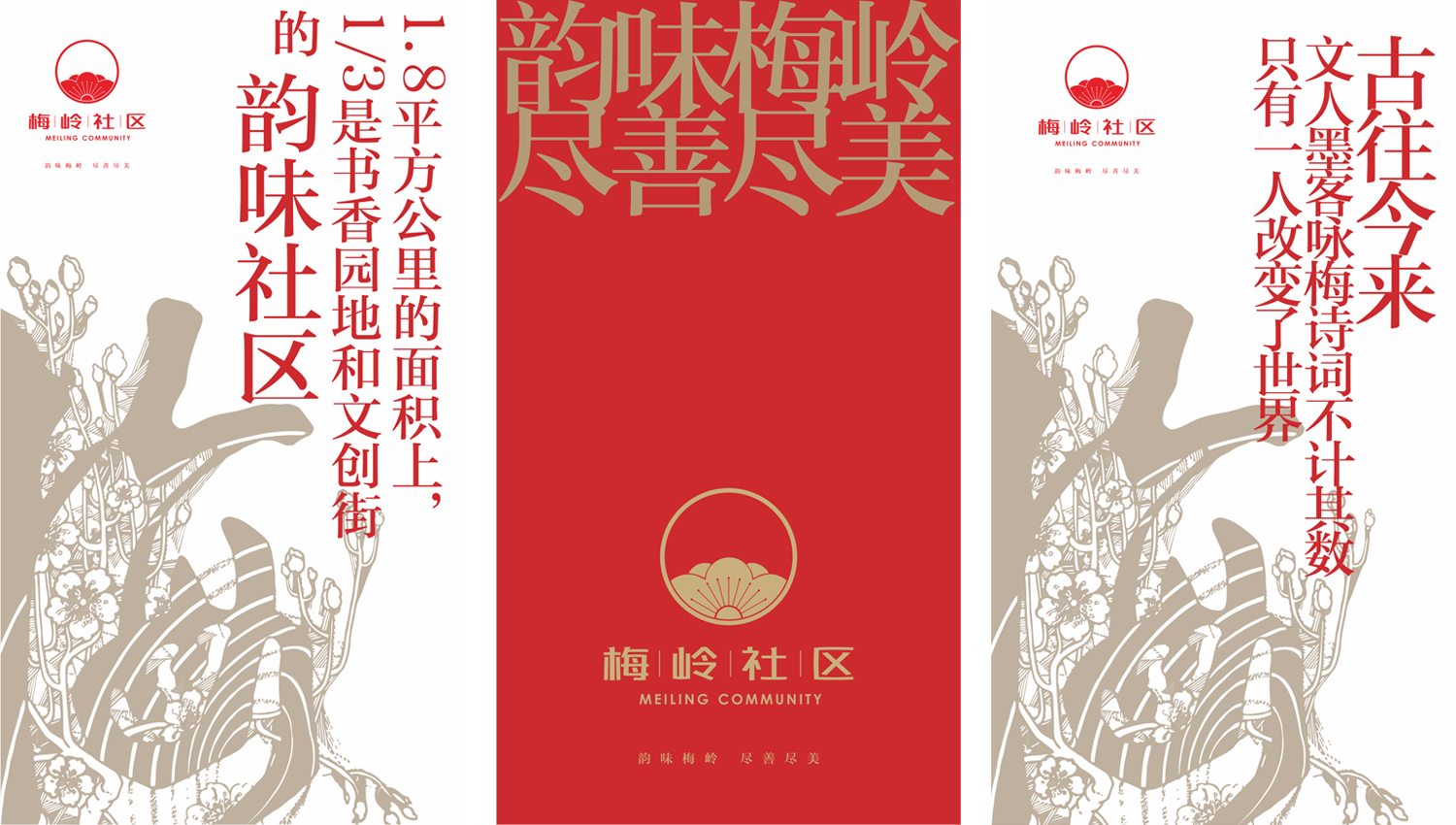 梅嶺社區位於長沙市天心區文源街道,社區轄域面積廣、人口多,老舊小區多,是長沙市天心區舊社區提質改造重點項目。為了響應社區提質改造的時代號召,打造既立足當下又能凸顯未來的社區特色品牌,我們對梅嶺社區進行多次實地調研後,充分結合社區特色文化與人文風貌,形成“文化梅嶺·盡善盡美”的社區品牌以及“美景美談書香地·熱心熱血梅嶺人”的社區口號,並通過品牌形象設計及空間設計,讓社區品牌建設落到實處,也讓普通市民充分享受社區發展成果。