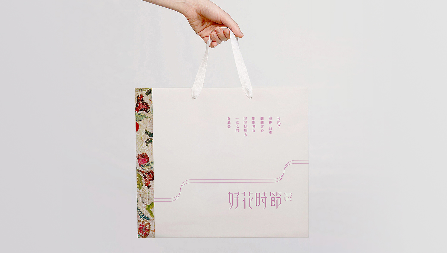 好花時節,一個出生在漢字裡的美學集成品牌,作為“重返圖書館,引領讀書潮”行動的第一批響應者,以女子&藝術閱覽室為載體,將絲綢、美器、茶等與女性生活及藝術體驗相關的有溫度的具有審美價值的文創日用品與藝術衍生品引入閱讀空間。我們以“絲綢、思想、詩意”為設計理念,進行了品牌視覺形象設計,將好花時節致力提供優質精神消費而非物質消費的學習場所與心靈家園的品牌願景展現地淋漓盡致。